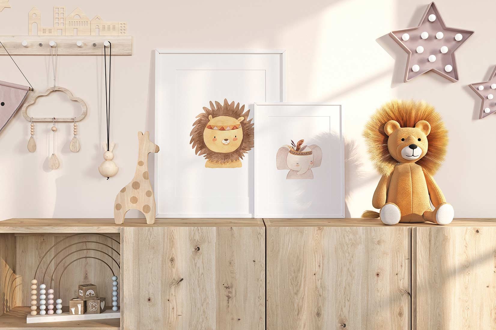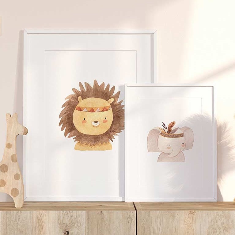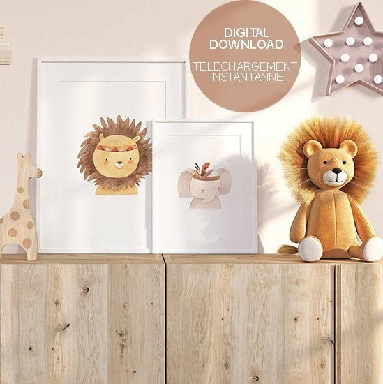 Lot de 2 affiches lion et éléphant à télécharger.